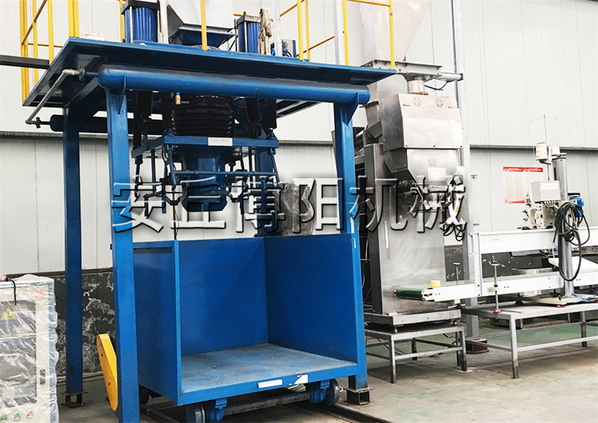 安丘博陽機械飼料顆粒自動噸包秤將物料包裝完成后可通過叉車、道軌輸送機、皮帶輸送機等設備把包裝好的噸包物料運到指定地點,省時省力又省人工。